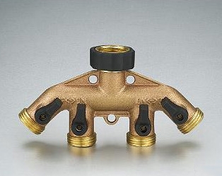 4-Way Garden Valve, 4 Way Brass Garden Hose Splitter with Shut Off Valve
